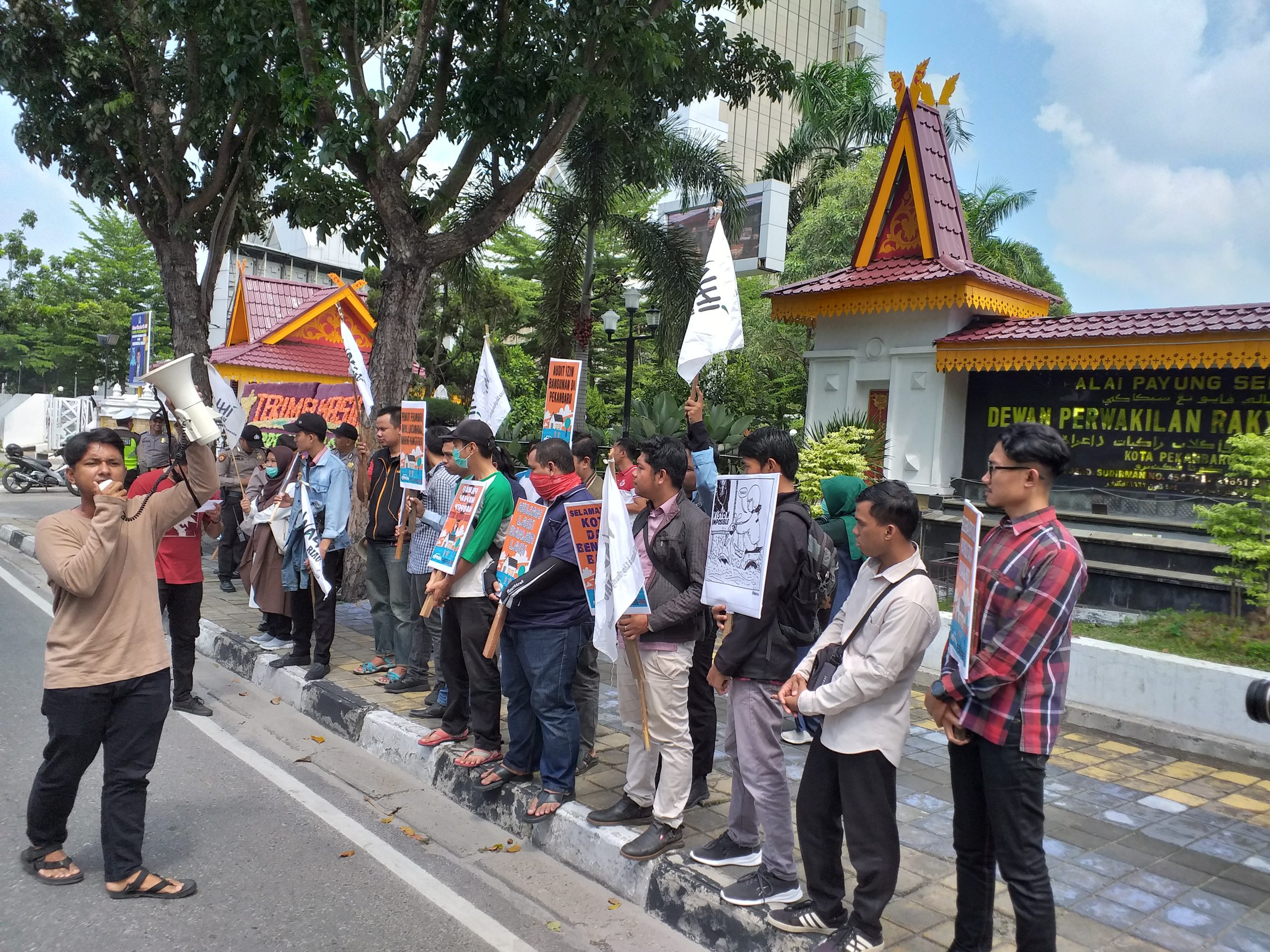 Kamis, 04 Juli 2019—Tepat satu minggu pasca aksi pertama, Koalisi Sedia Payung (KSP) mendatangi Gedung DPRD Kota Pekanbaru guna menuntut Firdaus MT selaku Walikota bertanggungjawab terhadap kematian Yeni Riski Purwati akibat terseret derasnya arus kanal saat banjir melanda pada 18 Juni lalu.